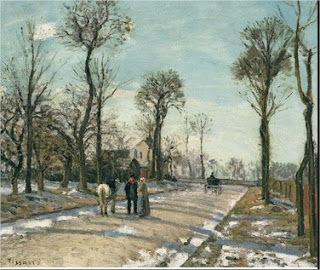 Hay dos cosas que me gustan especialmente de sus cuadros: que siempre haya caminos (dan ganas de perderse en los paisajes) y que transmitan muy bien la sensación de frío, de calor, de las estaciones. Por lo visto una enfermedad de los ojos le impidió seguir pintando al aire libre a partir de los 60 años. Entonces empezó a pintar ciudades, las calles y puentes que veía desde el interior de los hoteles donde residía.