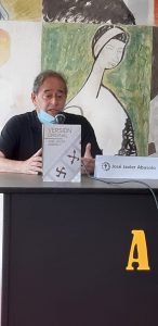 Después le tocaba el turno a Javier Abasolo presentado por Luis Artigue. Yo no había visto a Luis en acción, pero os aseguro que es pura pasión. Si vendiera crecepelo, yo compraría tres frascos. Vimos cosas en la novela Versión original de Abasolo que quizás no habíamos apreciado, como la metaliteratura, y descubrimos que nuestro amigo es el Simenon español. El mismo presentador tuvo a su cargo Desconfía de Jon Arretxe. Esta vez conocimos al Chester Himes eusakaldun y aprendimos cosas sobre la literatura poscolonial y multicultural. No es por quitarle mérito a Artigue, pero es fácil presentar a gente tan buena como Abasolo o Arretxe.