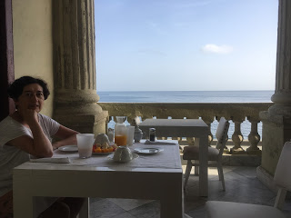 Es una antigua casa colonial frente al mar, en el Malecón. La han reconstruido tan bien como han podido. Todo está decorado en blanco y con espejos. Tiene una terraza con vistas al mar donde se toman los desayunos y el personal es muy amable. Nos recibieron con unas limonadas heladas y aire acondicionado y nos pareció haber llegado al paraíso.