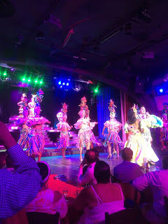 De allí nos fuimos al cabaré Parisien en el hotel Nacional. Un espectáculo tipo Tropicana. No sé por qué fuimos, es la típica cosa que nunca haríamos en España, pero supongo que es como ir en góndola en Venecia, una obligación de guiri que hay que cumplir. El espectáculo es lo que uno podría imaginar: canciones, bailes, mago y acróbatas, muchos turbantes con frutas, lentejuelas y una gente excepcionalmente guapa. Mulatas que me hacían sentir una albóndiga patizamba. Son naturalezas...