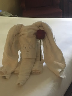 Nos alojamos en un hotel agradable y tranquilo. La camarera que arreglaba nuestra habitación era una auténtica profesional. Cada día nos sorprendía con nuevos motivos decorativos: un corazón hecho con toallas, rosas en el pomo de la puerta o un elefantito de toallas con rosa en la trompa. La toalloflexia no tenía secretos para ella.