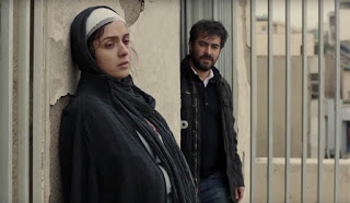 Hay que decir que cuando una va a ver una peli iraní sabe que es una apuesta arriesgada, pero yo soy valiente e insensata y, a veces, hasta me gustan. El festival, que me ha cultivado un poco. Bueno, pues esta, no. Es la historia de una pareja joven que debe abandonar el edificio donde vive porque amenaza ruina (todo lo que aparece en la película parece amenazar ruina) y se instalan en un piso que les cede un amigo.Son una pareja feliz y moderna, él es profesor de literatura y ambos actúan en un grupo de teatro que va a representar La muerte de un viajante (creo que hay sutiles paralelismos entre la obra y la historia de ellos, pero yo no lo pille). La agresión que sufre la mujer cuando está sola en el apartamento desencadena una crisis que cambiara muchas cosas en su relación. Yo os lo cuento aquí en un pispas, pero al director le lleva un par de horas y yo me revolvía en el asiento como un ñu enjaulado.