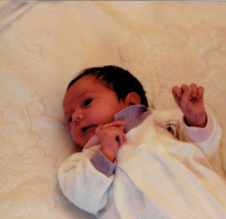 A las 18.30 un hermoso bebé pelirrojo (para sorpresa de la familia) y cabezón vino al mundo con los ojos completamente abiertos. Dicen que eso es signo de poderes paranormales, pero yo creo que es muestra de la curiosidad que la ha caracterizado siempre. Desde el primer momento dio muestras de buen carácter porque ya el primer día de vida durmió la noche entera, cosa que hizo que la quisiéramos mucho más.