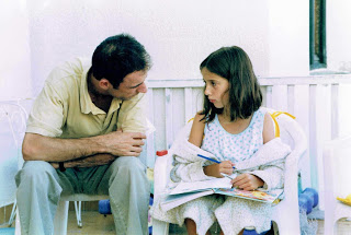 Tuvo una infancia tranquila, digamos que poco aventurera. Lo más exótico fue pasar un año en Chicago de donde volvió hablando inglés mucho mejor que sus padres. Desde el momento en que a los tres años dijo: “no me gusta el campo porque no hay tiendas” supimos que la niña no iba a ser montaraz y deportista. También dejó pronto claro su preferencia por el glamour con la frase “me gustan los bares, pero no las tabernas”. Le gustaba el colegio, cuidaba de su hermano y era lo que se dice una niña maravillosa. Probablemente, nos echará en cara esa faceta de su carácter, pero os aseguro que nosotros no hicimos nada más que mirarla crecer como si fuera un tulipán o un cebollino, sorprendidos de lo fácil que era educar niños. Ni siquiera la adolescencia fue una etapa difícil: salía muy poco, hacía pendientes, pintaba y bailaba.