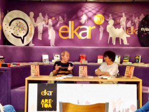 Esta entrada vale doble. No solo he leído esta novela, sino que, además, he conocido y presentado al autor en Donostia, en la librería Elkar. Para quienes no lo conozcáis, Jokin Azketa es escritor y un apasionado de los viajes y la montaña. De hecho, sus inicios en la escritura fueron en la revista Altaïr, y precisamente hablando de la Patagonia, donde transcurre su actual novela. Tiene otras tres publicadas antes: Donde viven los dioses menores, Lo que la nieve esconde, que fue premio Desnivel del 2013 y El tiempo del vacío. Todas tienen que ver con la montaña. En La vida en la punta de los dedos el paisaje de los Andes es el marco de la historia. El Chaltén es un pueblo a los pies del impresionante monte Fitz Roy. La desaparición de unas niñas tiene a los vecinos angustiados. Norman Scarf, un famoso escritor, acude al lugar con la idea de averiguar qué sucede y utilizarlo para un nuevo libro. Vamos siguiendo al protagonista y conocemos a los habitantes del Chaltén: el alcalde, preocupado porque la mala fama afecte a El Chaltén; un policía honrado, que no se conforma con tener un culpable y tiene dudas; una maestra que observa a las niñas como un naturalista; un montañero paralizado ante una hazaña imposible; una hermosa mujer triste; unos padres angustiados... Las piezas del mosaico van encajando y las niñas se nos presentan como víctimas inocentes de los problemas de los adultos.Me gustó la novela y me gustó tener la oportunidad de charlar con Jokin. Nos contó muchas cosas interesantes sobre la importancia de la naturaleza en sus obras; sobre el personaje de Norman Scarf, un hombre con algunas ambigúedades morales que veremos en más novelas. También sabemos que le gustaría tener la oportunidad de escribir una novela pasando un invierno en una localidad como El Chaltén, aunque por ahora se tiene que conformar con viajes y cuadernos de notas. Le preocupa ser fiel a la realidad y conseguir que el lector vea el paisaje, incluso tiene un mapa detallado al lado mientras escribe. En resumen, si os gusta el monte, os encantará, y si no sois montaraces, tenéis la ocasión de viajar a la Patagonia sin moveros del sofá.