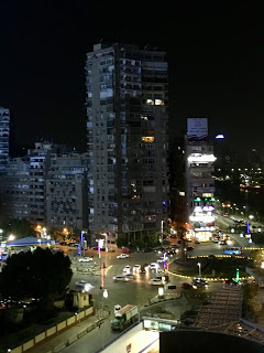Agotados, llegamos al aeropuerto donde nos informaron que nuestro vuelo se retrasaba noventa minutos. El mundo de los aviones esta en nuestra contra. Llegamos tardísmo al hotel Sheraton que es inmenso (farónico, diría yo)lujoso y feo. Está bastante céntrico, aunque el concepto paseo en El Cairo es un oxímoron. Digamos que se trata de una huida a muerte. Los coches van a por ti, los esquivas con gran riesgo para tu vida. Los semáforos están de adorno, les parecen una cosa que aconseja pero no obliga.