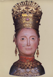 Orosia, que no sabemos si significa"buen rocío" o "elocuente", era una joven noble de Bohemia (como el cristal). En realidad se llamaba Dobroslava, pero se quedó huérfana y los nobles que la adoptaron la bautizaron como Orosia (en Jaca agradecen no tener que hacer romerías de santa Dobroslava). El caso es que en Aragón querían casar a Fortunio Jiménez y el propio Papa les recomendó a una chica muy maja de Bohemia que se llamaba Orosia.