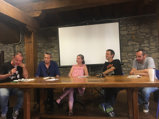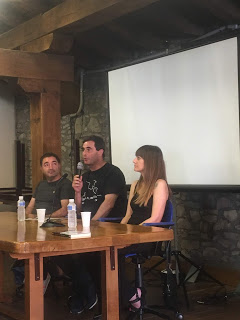 El sábado amaneció un día precioso (Juan Mari Barasorda lo había encargado) y la mesa Crímenes de película y crímenes en serie: Atrapando al espectador comenzó puntual. Una gozada oír a Francisco J. Ortiz, Josevi Blender y Noemi Pastor hablar de pelis, series, cambios entre las de ayer y las de hoy, qué es el cine noir y el neo-noir Ya era muy fan de Noemí Pastor, ahora también lo soy de Francisco J. Ortiz y Josevi Blender.