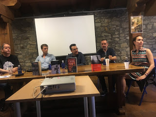 Y para acabar, antes de los premios, la mesa Justos, Pecadores, Androides y Sospechosos Habituales con Jon Arretxe (La banda de Arruti), Carlos Bassas (Justo), Juan Ignacio Montiano (Sueñan los humanos con androides cariñosos) y Marina Sanmartín (El jardín de los sospechosos) moderados por Ricardo Bosque. Fue una mesa muy divertida y conseguí que Jon Arretxe no me denunciara por acoso, pese a que le persigo diciendo lo que me gustan sus novelas.