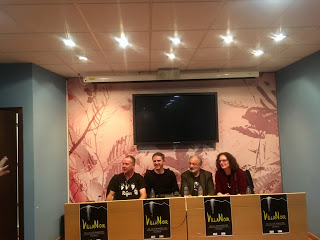Por la tarde tuvimos al jefe de la barraca, Ricardo Bosque, moderando la mesa ¿Por qué le llaman novela negra cuando quieren decir...? donde Empar Fernández, Jose Luis Muñoz, Marcelo Luján y Clara Peñalver (virtualmente, porque no pudo llegar) hablaron de novela negra y criminal, novela gris asfalto, los cambios que se han producido en el género y la relevancia del mal, el lado oscuro y la culpa como eje de las novelas.